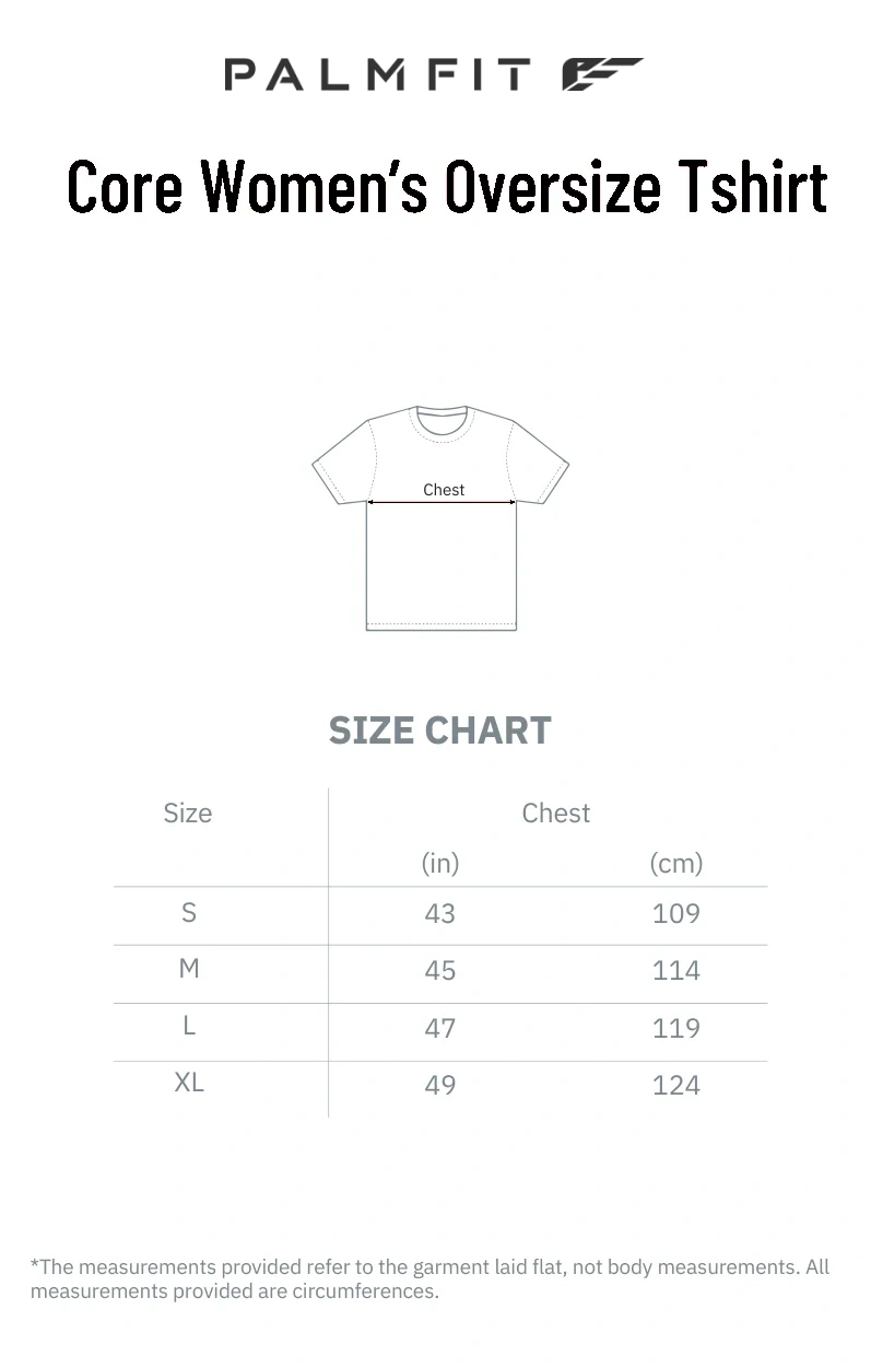 Crafted with precision from premium, breathable fabric, PALMFIT Core Women’s Oversize T-shirt provides a luxurious feel against your skin, ensuring comfort during any activity. The oversized silhouette exudes contemporary style, allowing for versatility in how you choose to wear it – either casually draped or knotted for a more fitted look.