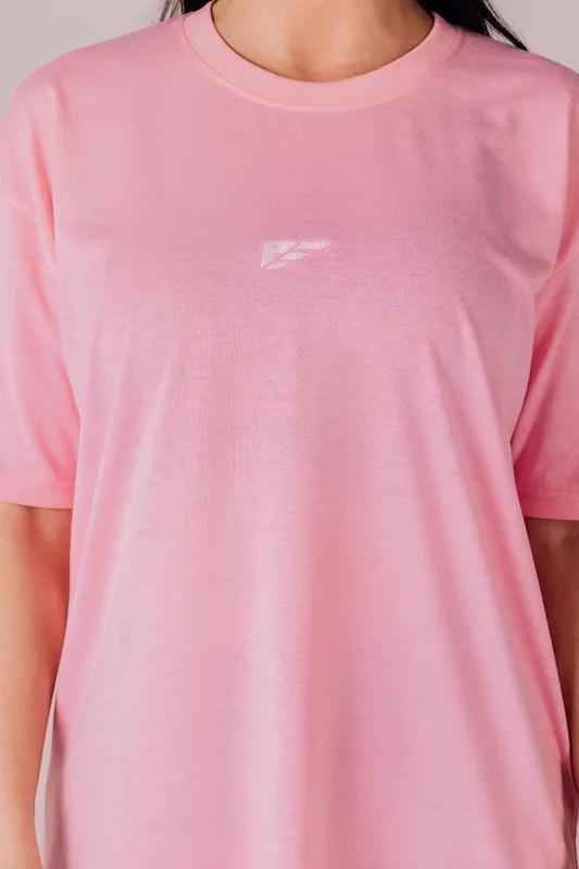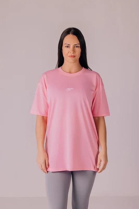 Whether you're breaking a sweat or embracing leisure time, PALMFIT Core Women's Oversize T-shirt in Baby Pink delivers unmatched adaptability. Pair it with your favorite PALMFIT leggings or jeans for a complete ensemble that reflects your commitment to both fashion and comfort.