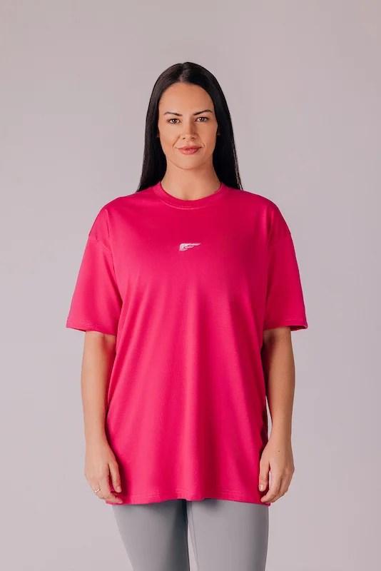 Whether you're breaking a sweat or embracing leisure time, PALMFIT Core Women's Oversize T-shirt in Strawberry Pink delivers unmatched adaptability. Pair it with your favorite PALMFIT leggings or jeans for a complete ensemble that reflects your commitment to both fashion and comfort.